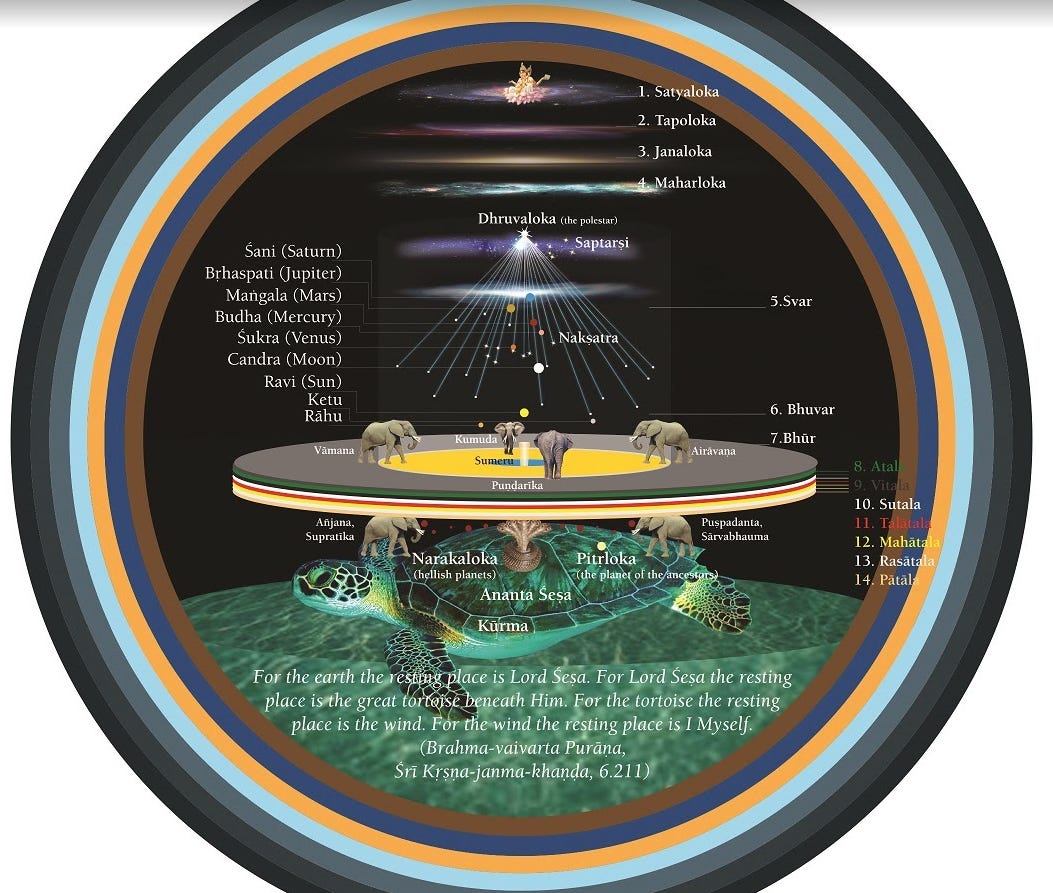 Therefore, when we study the model of the universe described in the Śrīmad Bhāgavatam, it makes more sense to try to understand it as a map of different levels of consciousness, a description of how each level is progressively harder to attain than the previous, and the process to achieve it, rather than a literal description of distances measured in earthly inches or meters.