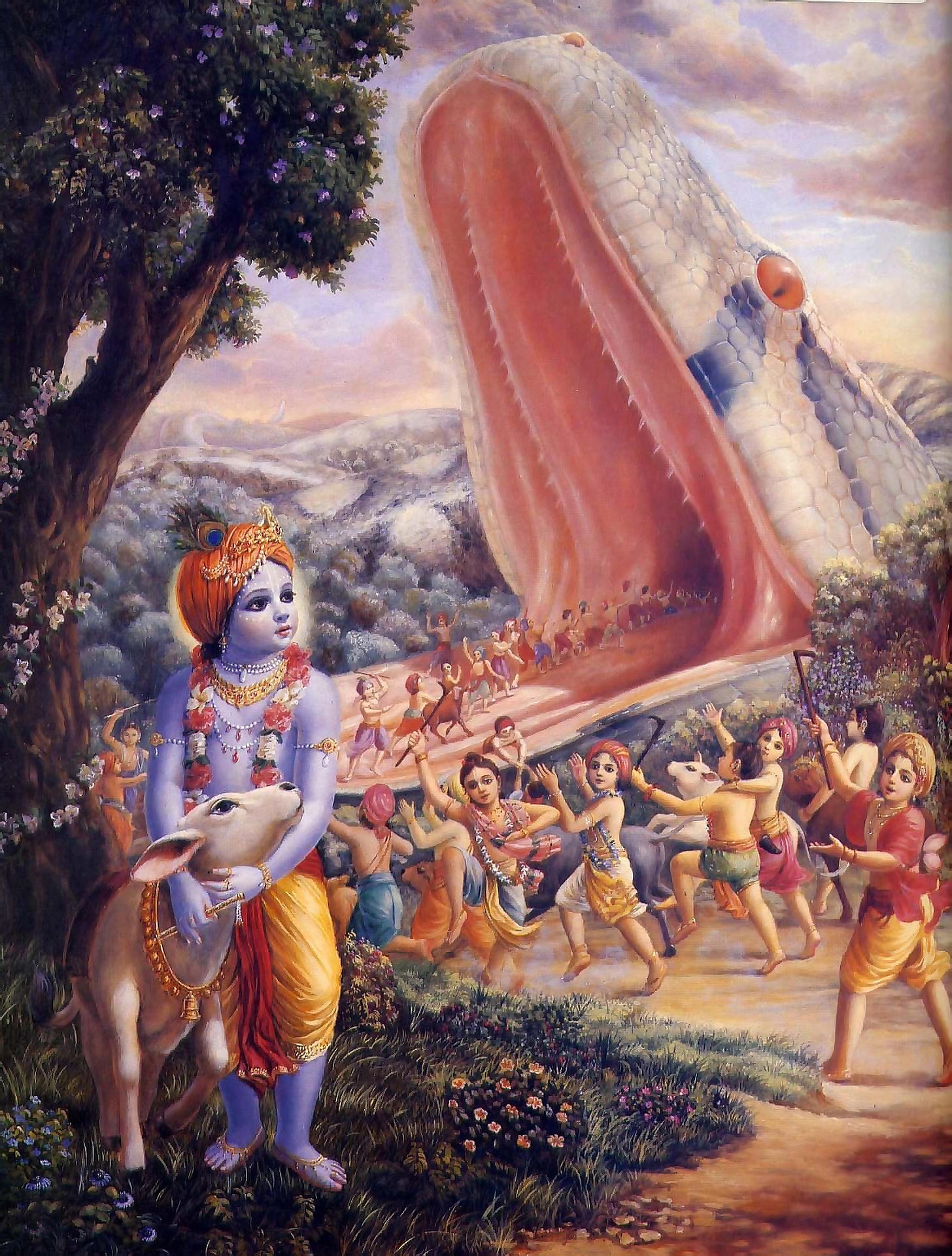 “Sometimes we suffer because we see a tiger in a dream or a snake in a vision, but actually there is neither a tiger nor a snake. Thus we create some situation in a subtle form and suffer the consequences. These sufferings cannot be mitigated unless we are awakened from our dream. The real interest of the living entity is to get out of the nescience that causes him to endure repeated birth and death. The only remedy is to surrender unto the Supreme Personality of Godhead through His representative. Unless one renders devotional service unto the Supreme Personality of Godhead, Vāsudeva, one cannot possibly become completely detached from this material world, nor can he possibly manifest real knowledge.” (SB 4.29.35-37)