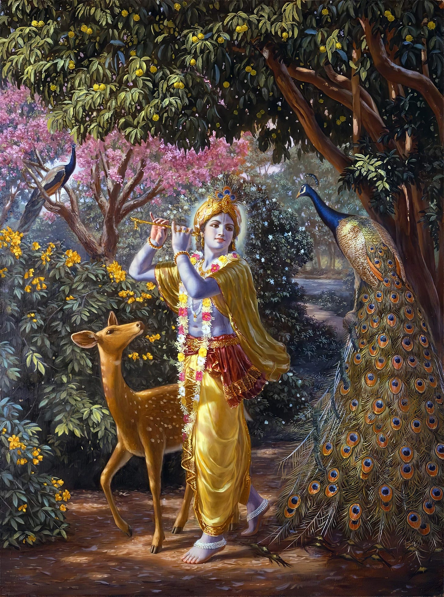 The vijñāna-māyā puruṣa is pervaded by another self, the ānanda-māyā. The ānanda-māyā has the form of a human, like the previous puruṣa. His head is pleasure (priya), his right side is joy (moda), his left side is delight (pramoda), his identity is bliss (ānanda), and his foundation is Brahman (the Lord Himself).” (Taittirīya Upaniṣad 2.5.1)