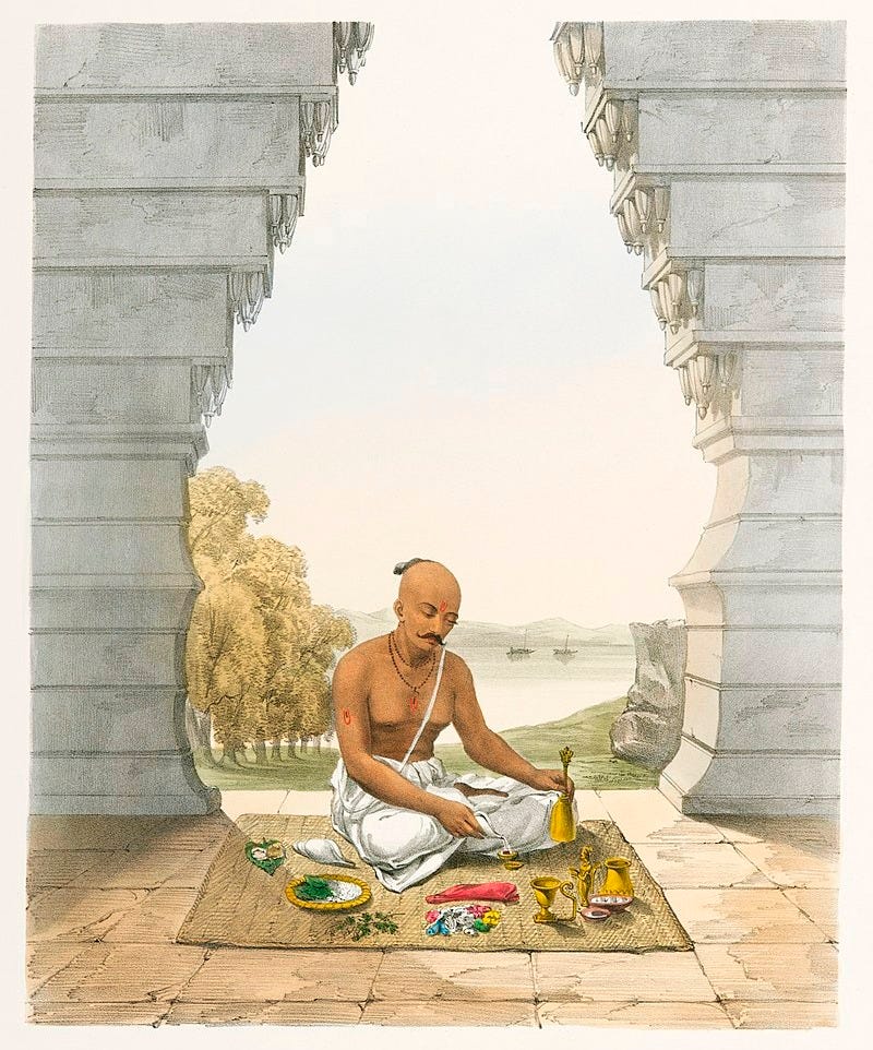 Śrīmad Bhāgavatam 11.16.17 describes the qualities of a brāhmana: “Peacefulness, self-control, austerity, cleanliness, satisfaction, tolerance, simple straightforwardness, devotion to Me, mercy and truthfulness are the natural qualities of the brāhmaṇas.”
