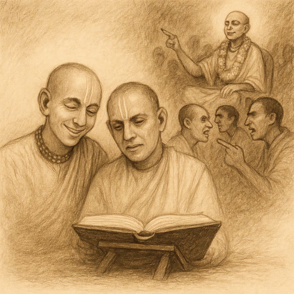Śrila Bhaktivinoda Thākura could identify this problem, and therefore, he developed the concept of a governing body as the head of a spiritual institution, instead of the traditional system of a single ācārya. When Śrila Bhaktisiddhānta Sarasvatī Thākura was about to pass away, he told his disciples to organize a governing body to take care of the Gauḍīya Maṭha in his absence. He made clear his desire that there should not be a single ācārya. They tried, but the problems in putting together such a governing body proved too hard to solve at the time, and they ended up electing a single ācārya. Not very long afterward, the so-called ācārya fell down, paving the way for the problems that followed. The Gauḍīya Maṭha fragmented into many smaller institutions, and the infighting took a heavy toll.