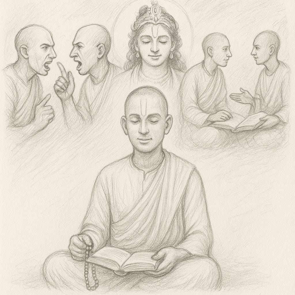 In the Bhagavad-gītā, Kṛṣṇa says that “among logicians I am the conclusive truth.” The word used in this verse is “vadaḥ”, which shows how this type of enlightened, fruitful argument is a manifestation of Kṛṣṇa.