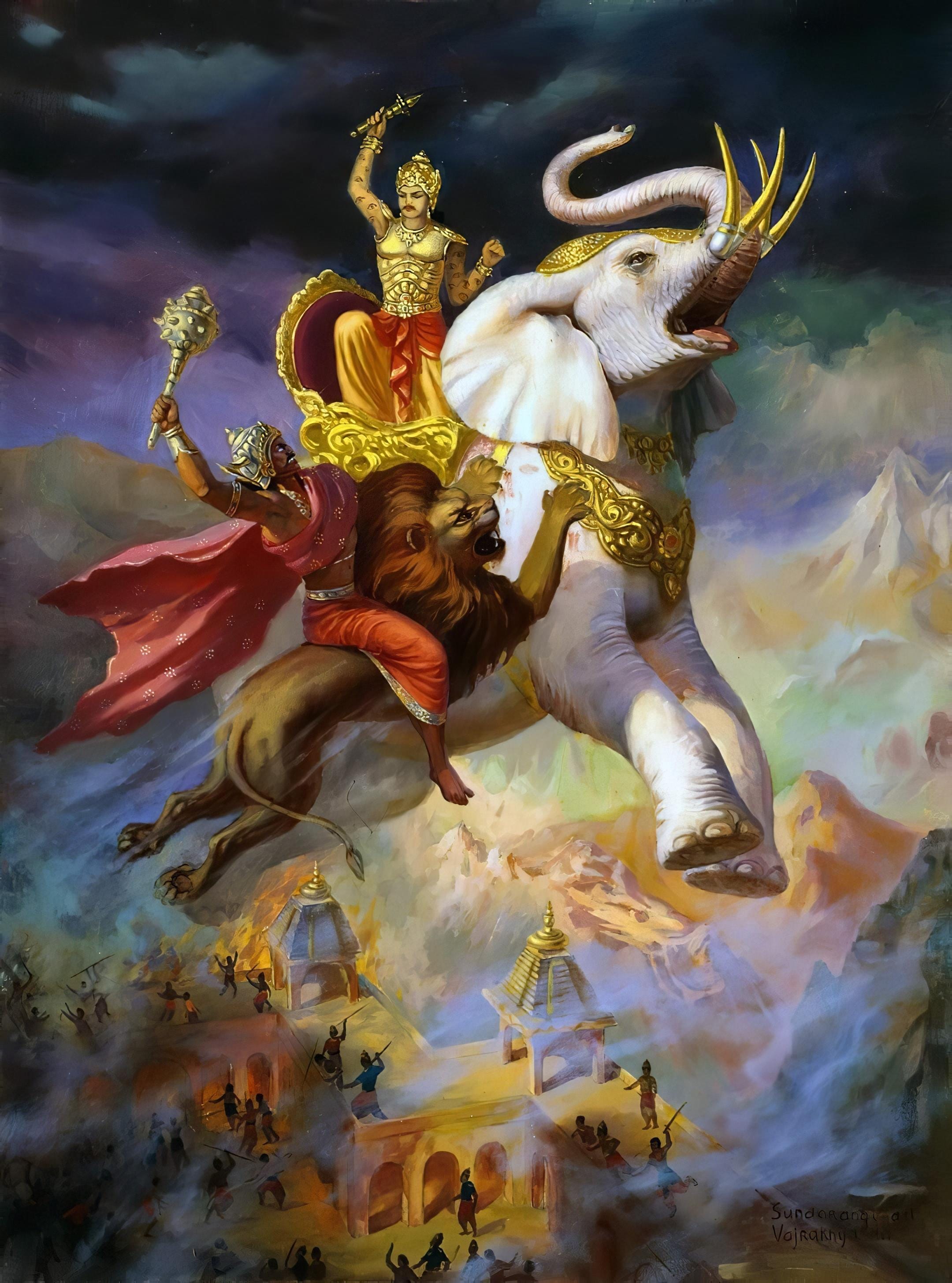 Although in practical life we call the eye “eye”, and we call Indra “Indra”, ultimately, these are all manifestations of the Lord. What we call “Indra” (as a body or a position) is just a manifestation of the external potency of the Lord. However, a particular soul, under the influence of the illusory potency, identifies itself with this body and position and incorrectly claims to be Indra. In the passage, Indra intelligently acknowledges that his body and opulences are manifestations of the Supreme Lord and that the Lord performs many wonderful deeds through this body.