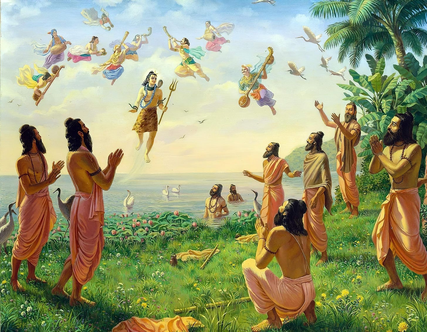 In the material platform, hearing about a person is very different from physically being with him or her, but in the spiritual platform, everything is absolute, and there is no difference between the person and his name and activities. Hearing about the activities of the Lord and His eternal associates means associating with them, and this association can bring us to the transcendental platform, especially when the Srimad Bhagavatam is studied alongside like-minded devotees.