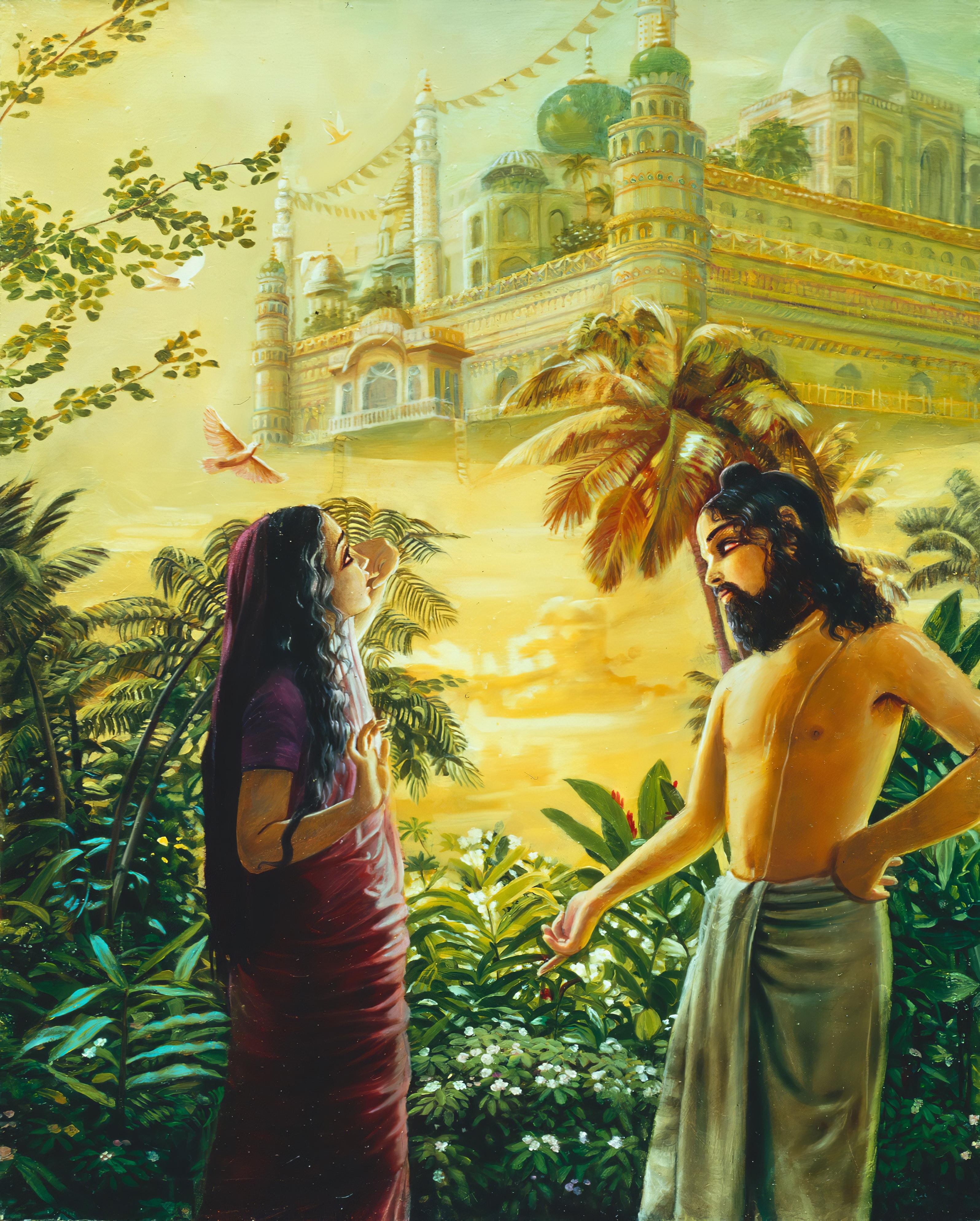 Before narrating the explanation given by Lord Kapila in the Sankhya philosophy, Maitreya described the family life of Kardama Muni and Devahuti in chapters 3.23 and 3.24. One may question why Srimad Bhagavatam describes their family life, instead of focusing on the teachings of Lord Kapila, but the obvious answer is that Bhagavatam describes it because that’s not less important. The family life of Kardama Muni is not only pure, conducted with the purpose of bringing a ray of Vishnu, an incarnation of the Lord who could benefit the entire universe, but is also a great example for us, illustrating values that are essential for a spiritually conducive family life. It is not possible for us to imitate the austerities of Kardama Muni and Devahuti, nor is it recommended, but we can learn from their example.