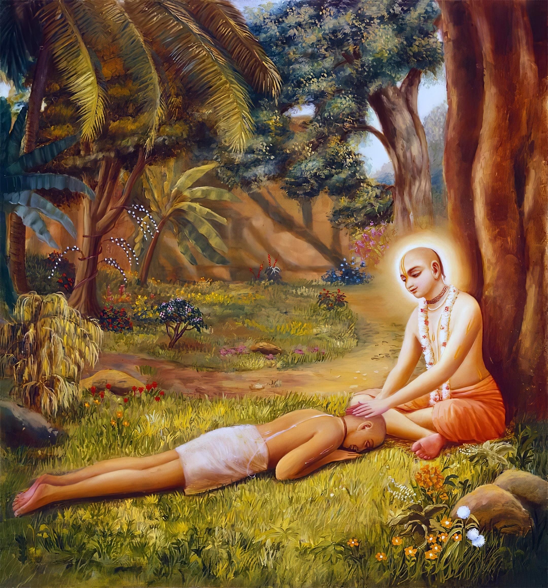 A second point is that a person may have done something sinful or immoral in the past, but he may have since been absolved due to repentance and engagement in devotional service. This is also an invisible process that may be very difficult to notice. This was a mistake committed by the Yamadūtas, for example, when they tried to take Ajāmila to hell due to his long sequence of sins, failing to realize that he had already atoned for these sins by his chanting of the holy name of Narāyana. When the Viṣṇudutas appeared, they argued that the Yamadūtas could not take Ajāmila because he was innocent, leading to the discussion that is registered on the pages of the Śrīmad Bhāgavatam.