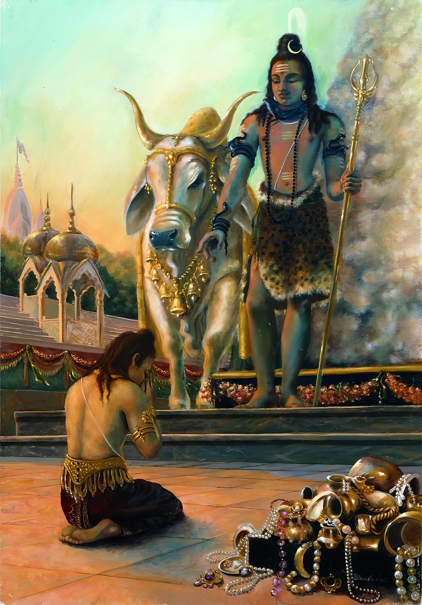 According to the Srimad Bhagavatam, Daksa started his work of populating Bhu-Mandala shortly after that. However, his work was interrupted when he offended Lord Shiva and was a result killed by Vīrabhadra, the gigantic black created by him after the death of his wife Sati. Vīrabhadra cut his head and threw it into the fire, but after the demigods prayed to Lord Shiva, he was resurrected with the head of a goat.