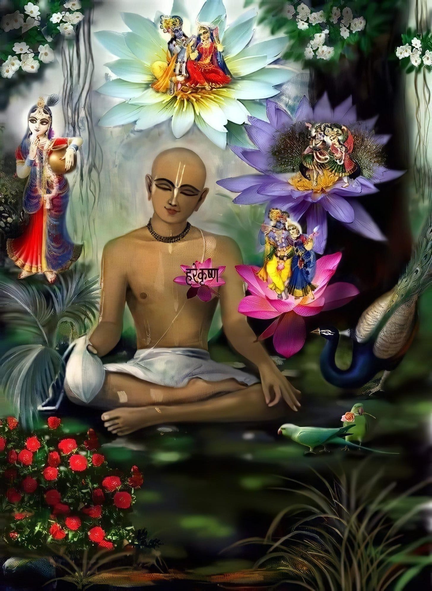 “When the Queen drank liquor, King Purañjana also engaged in drinking. When the Queen dined, he used to dine with her, and when she chewed, King Purañjana used to chew along with her. When the Queen sang, he also sang. Similarly, when the Queen cried, he also cried, and when the Queen laughed, he also laughed. When the Queen talked loosely, he also talked loosely, and when the Queen walked, the King walked behind her. When the Queen would stand still, the King would also stand still, and when the Queen would lie down in bed, he would also follow and lie down with her. When the Queen sat, he would also sit, and when the Queen heard something, he would follow her to hear the same thing. When the Queen saw something, the King would also look at it, and when the Queen smelled something, the King would follow her to smell the same thing. When the Queen touched something, the King would also touch it, and when the dear Queen was lamenting, the poor King also had to follow her in lamentation. In the same way, when the Queen felt enjoyment, he also enjoyed, and when the Queen was satisfied, the King also felt satisfaction.” (SB 4.25.57-61)