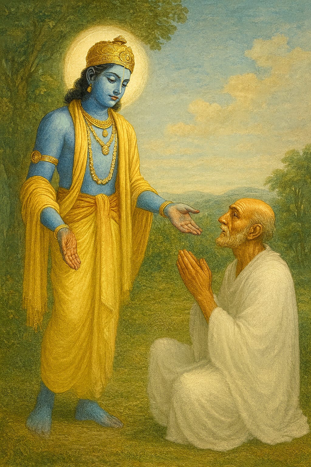 Still, if we are going to ask something from someone, it is better to go to Krsna. In the Gītā, Krsna Himself explains that four categories of persons approach him. Two are looking for knowledge (the curious and the one looking for knowledge of the absolute), while the other two (the distressed and the desirer of wealth) are looking for material benefits. Still, Krsna describes them as "great souls" because even though desirous of material benefits, they are approaching Him.