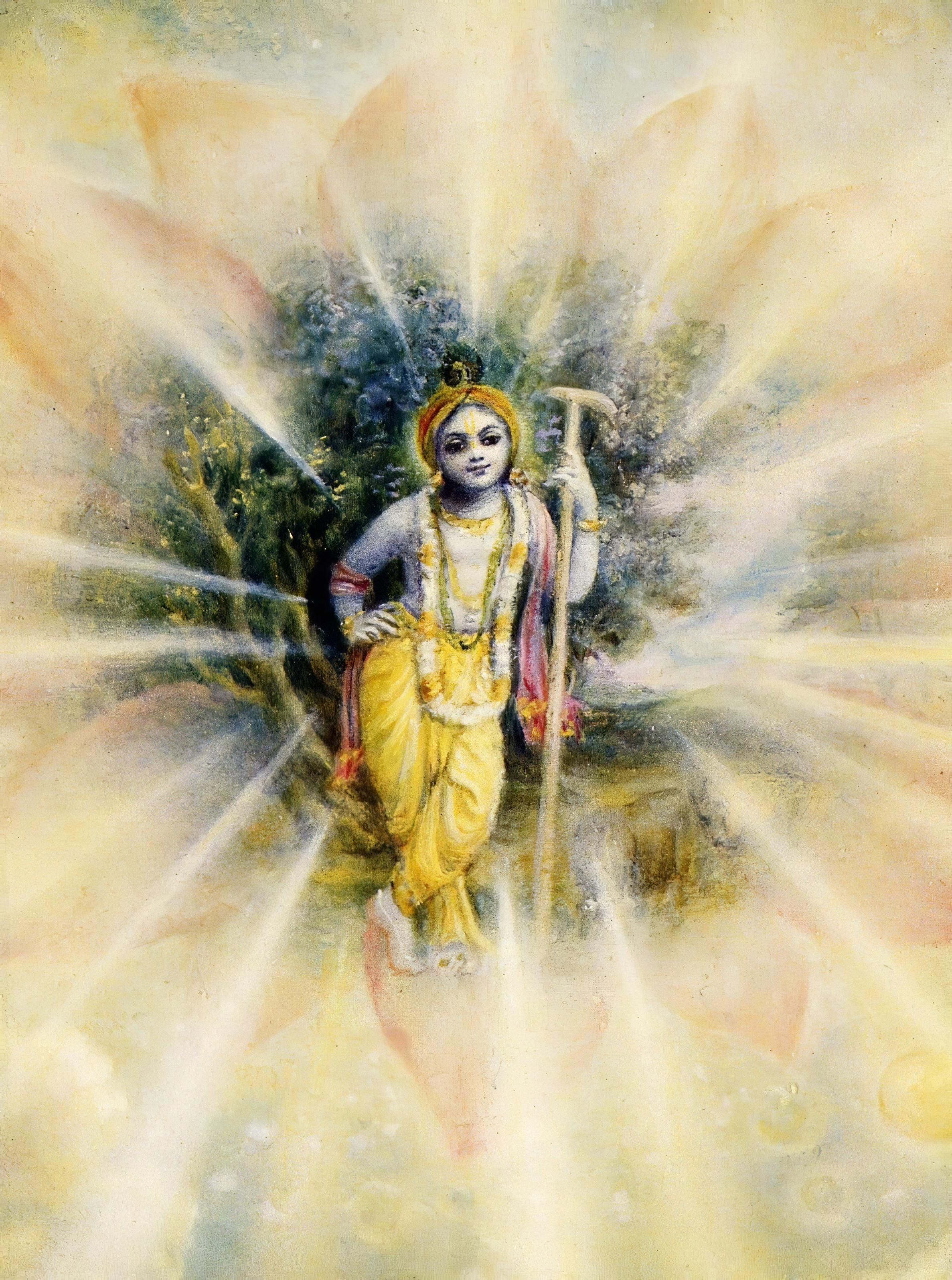 Kṛṣṇa is not different from His energy; therefore, it is not incorrect to describe the energy as a part of Kṛṣṇa. Kṛṣṇa has three main energies: the internal potency, the external potency, and the marginal potency. The internal potency forms the spiritual sky, which corresponds to three-quarters of the total creation (the three feet), while the material energy corresponds to one-quarter (the one foot). The marginal potency is composed of the souls who can choose between being situated on one or another. The light mentioned in the sūtra refers to the effulgence of Kṛṣṇa, the Brahmajyoti. The energy is not different from the energetic; therefore, when the sūtra speaks about the light, it is ultimately speaking about Kṛṣṇa, the Supreme Person.