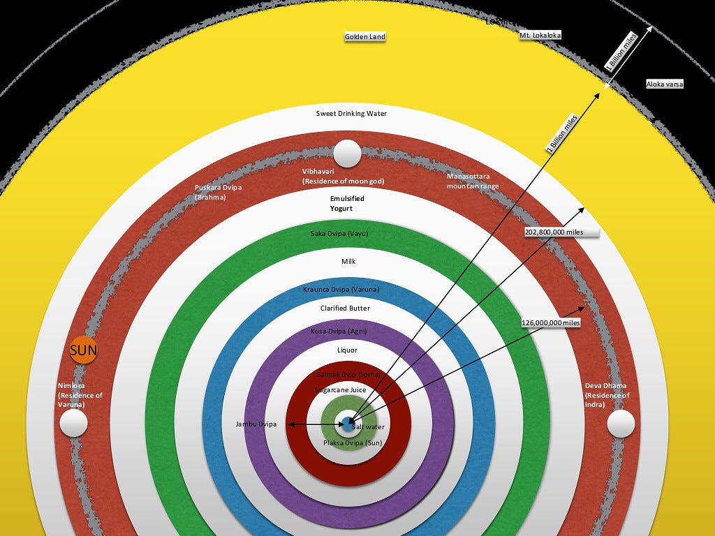One of the most difficult to understand aspects of the Śrīmad Bhāgavatam is the description of Bhū-mandala in the Fifth Canto, the huge series of concentric islands and oceans that is supposed to divide the universe into two halves. This is a part of the Bhāgavatam that we usually end with more questions than when we started.