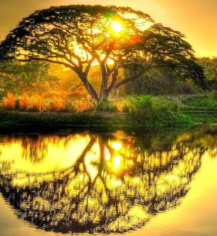 Another way to understand it is to see the universe as an inverted tree, as Kṛṣṇa describes in the Bhagavad-gītā.