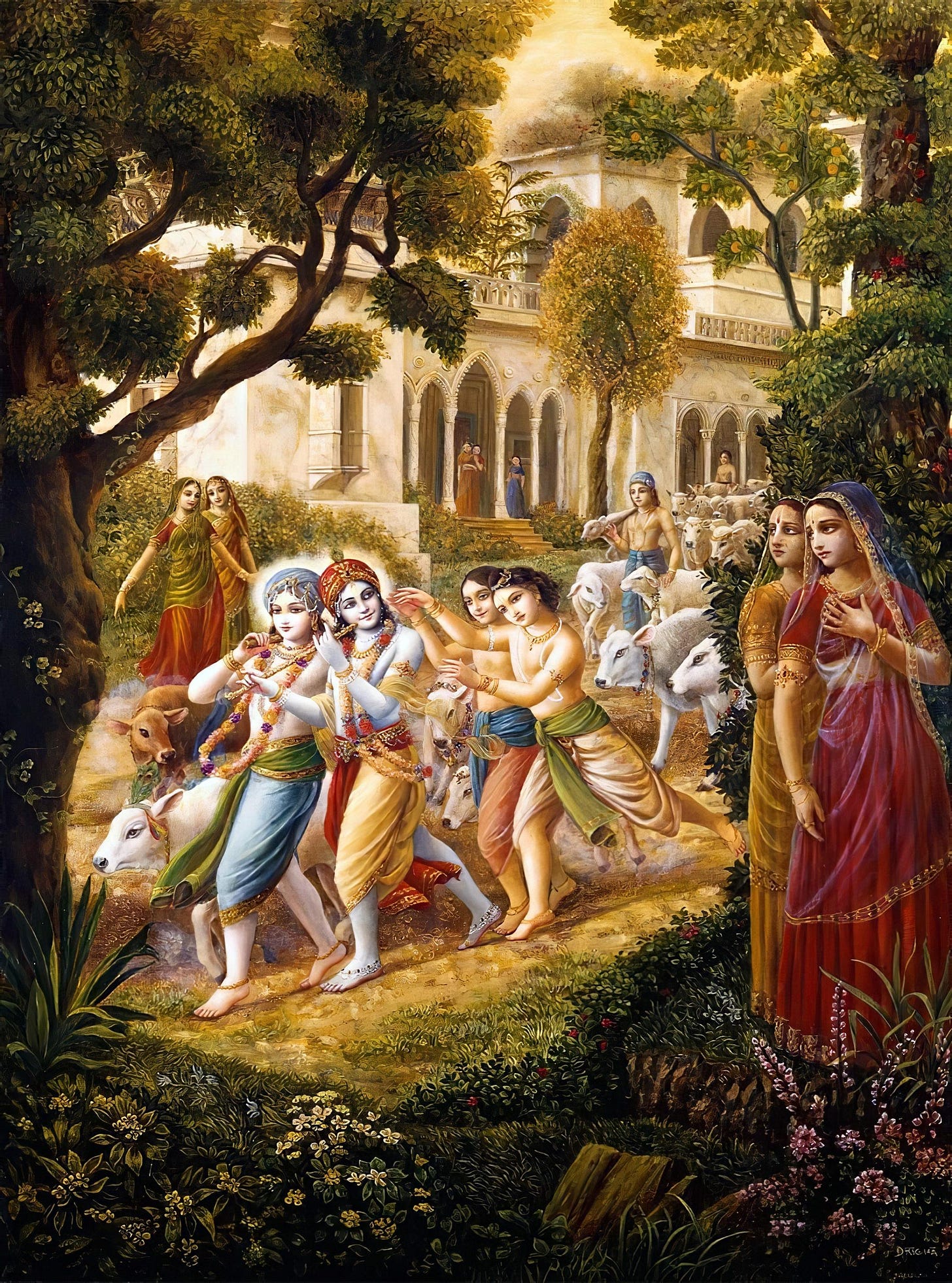 The soul is blissful by nature, but in material life this original nature is covered. Instead of real happiness, we look thus for pleasure outside, connected with the senses and the sense objects.