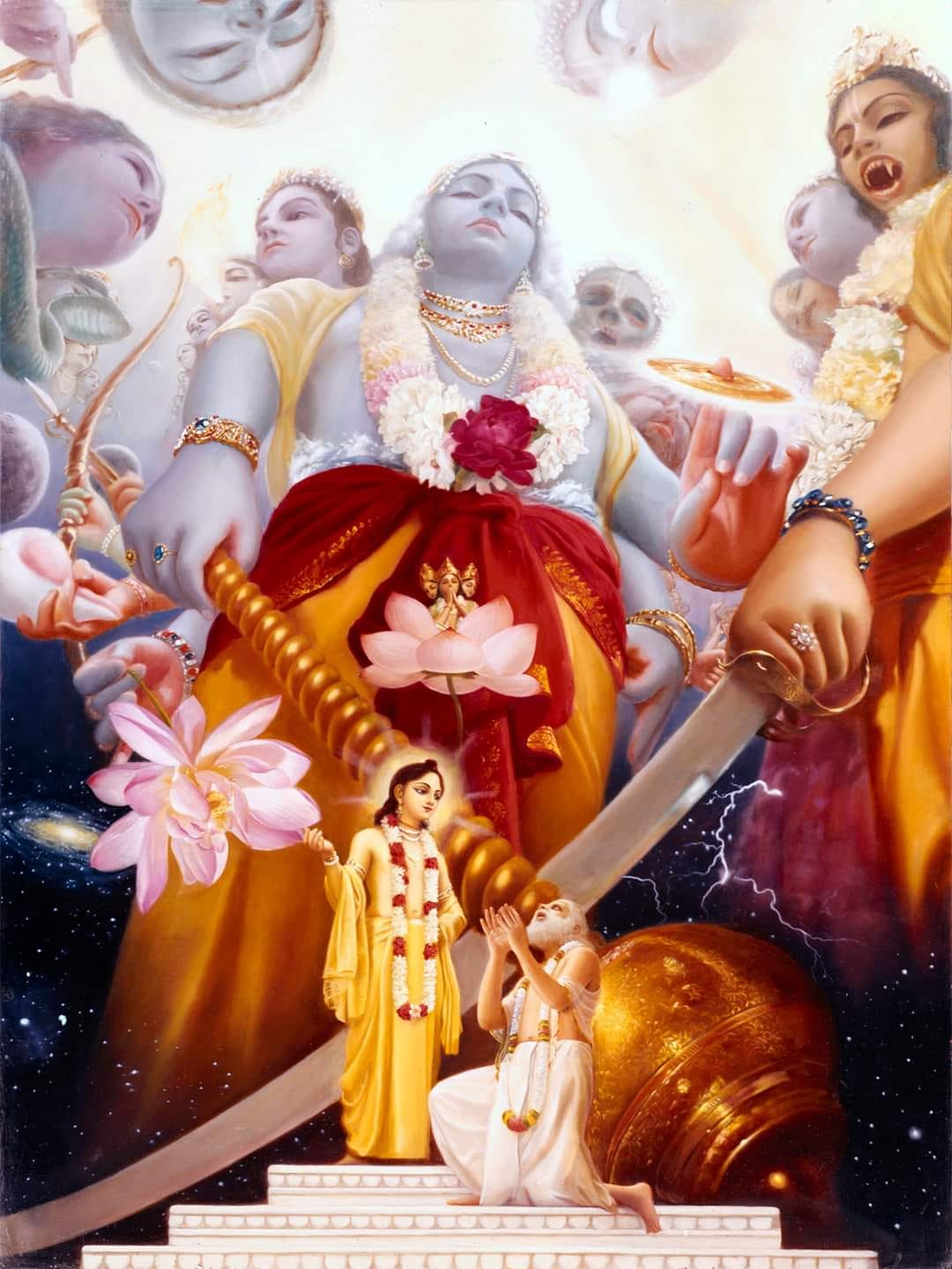 As this intensifies, we come to the stage of Bhāva, which is the appearance of the first rays of love of Godhead. In the stage of Bhava, we finally reconnect with our original love for Krishna and start seeing ourselves as who we really are. In this stage, we start seeing reality, understanding the transitory nature of this world, and seeing the eternal, blissful reality that exists behind it. It changes not only the way we see the world but the way we see other living entities. Suddenly, we don't pay much attention to their external forms but can see their very essence as transcendental souls. As a result, we develop love and compassion for all, without distinction. At this stage, we don't see a distinction between friends and enemies, pleasant and unpleasant