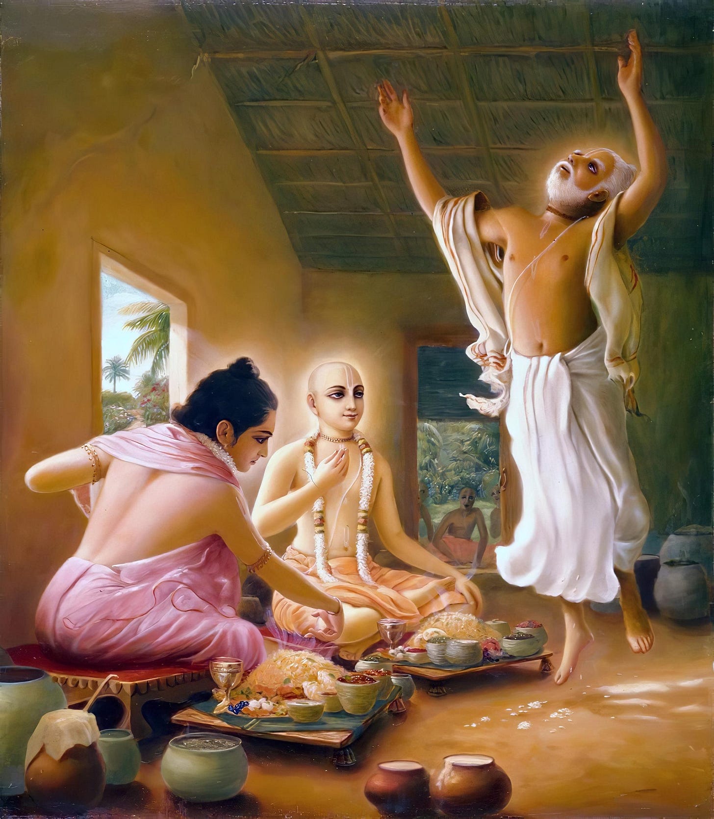 k) Another essential point is to offer our food to the Lord, and eat only prasāda: “The gṛhastha should not eat anything not offered to the Supreme Personality of Godhead. As it is said in the Bhagavad-gītā (BG 3.13), yajña-śiṣṭāśinaḥ santo mucyante sarva-kilbiṣaiḥ: “The devotees of the Lord are released from all kinds of sins because they eat food that is offered first for sacrifice.”