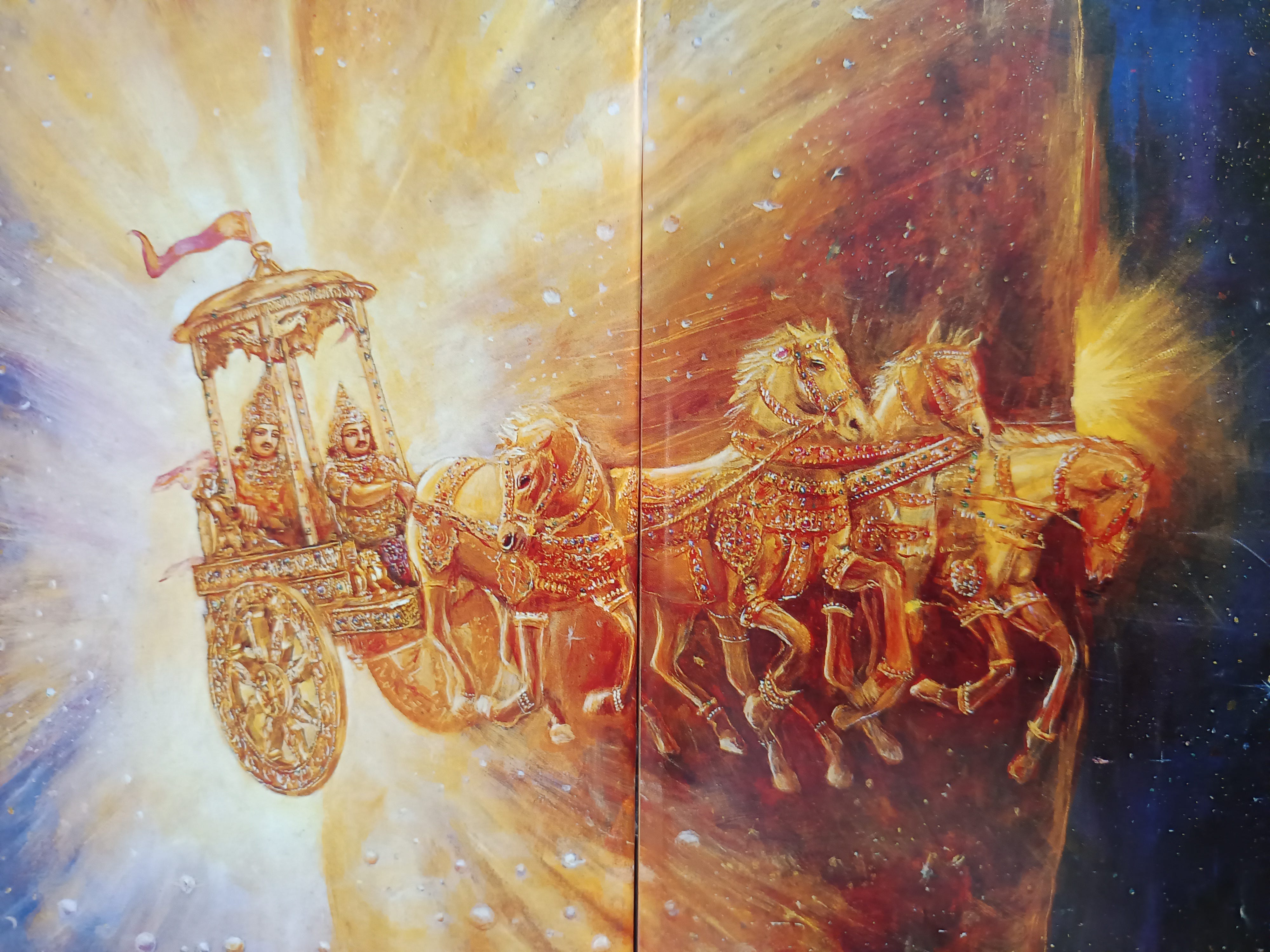 For this, he created a special chariot that was as brilliant as the sun. This may sound mythical to us, but again, we must consider that there are many things we don’t know. In the Third Canto, we studied how Kardama Muni built a flying castle, as big as a city, that could travel all over the universe, and now we hear that Priyavrata created a chariot that not only could travel around the cosmos, but was as brilliant as the sun. Just as we may build a plane or a computer, these great personalities can build interplanetary castles and chariots that are so powerful. The verse gives the key for understanding that with the words “bhagavad-upāsanopacitāti-puruṣa-prabhāvas”: Priyavrata became so powerful due to being empowered by the Supreme Lord, who was fully satisfied with His service. Since the Lord can create countless universes out of His breath, it is not difficult to imagine that He can empower his devotees to create such wonders.