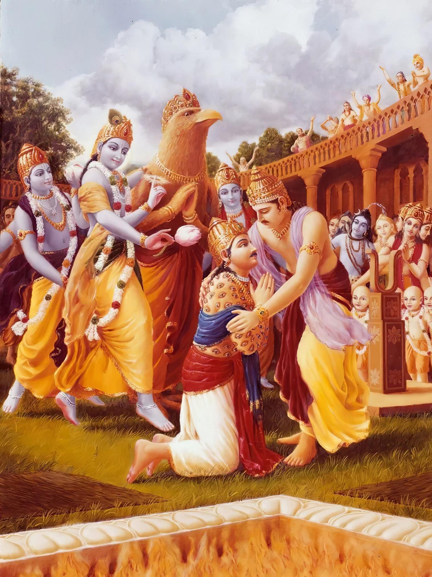 After Brahma instructed Pṛthu to stop after the 99th sacrifice, the conflict with Indra was solved. However, there was still the issue of the offenses committed by the demigod. Pṛthu was not at all concerned about that, such as his magnanimity, but committing such serious offenses against a great personality like Pṛthu was something extremely serious, even for a great demigod like Indra. To solve the problem, Lord Viṣnu Himself appeared in the arena of sacrifice.