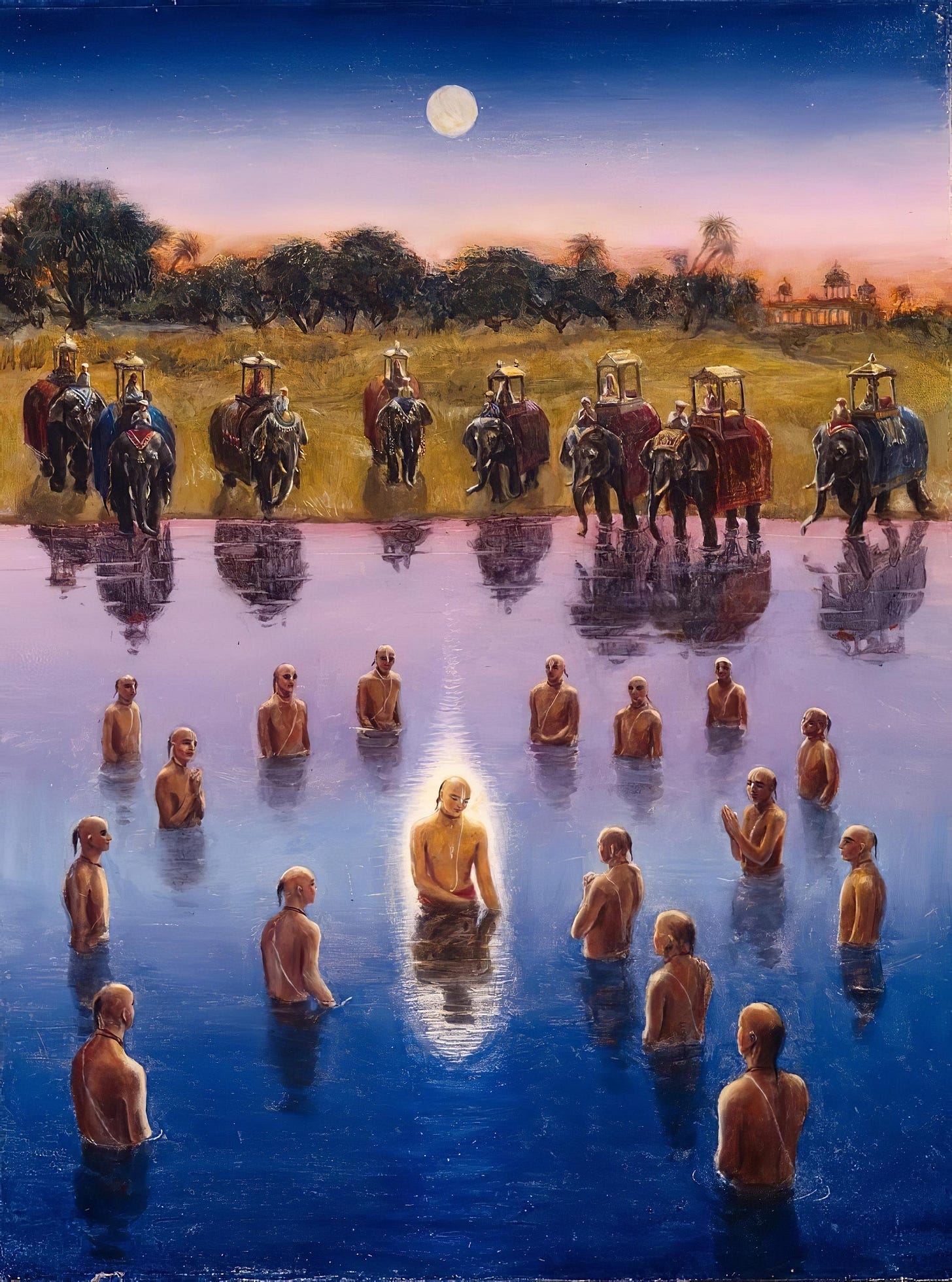 Under the spell of the false ego, we forget our original identity and become absorbed in lamentation connected with different material situations. Lord Kapila compares this state with the situation of a man who forgets himself while sleeping. While sleeping, one doesn’t stop existing, nor does he go anywhere, but due to the forgetfulness of sleep, he becomes unconscious. While sleeping, one can also identify with illusory situations while dreaming, but these also don’t affect his real existence. Another example given is that a man identifying with his money may think he is lost after losing some money, but this is also due to illusion, since only the money was lost.