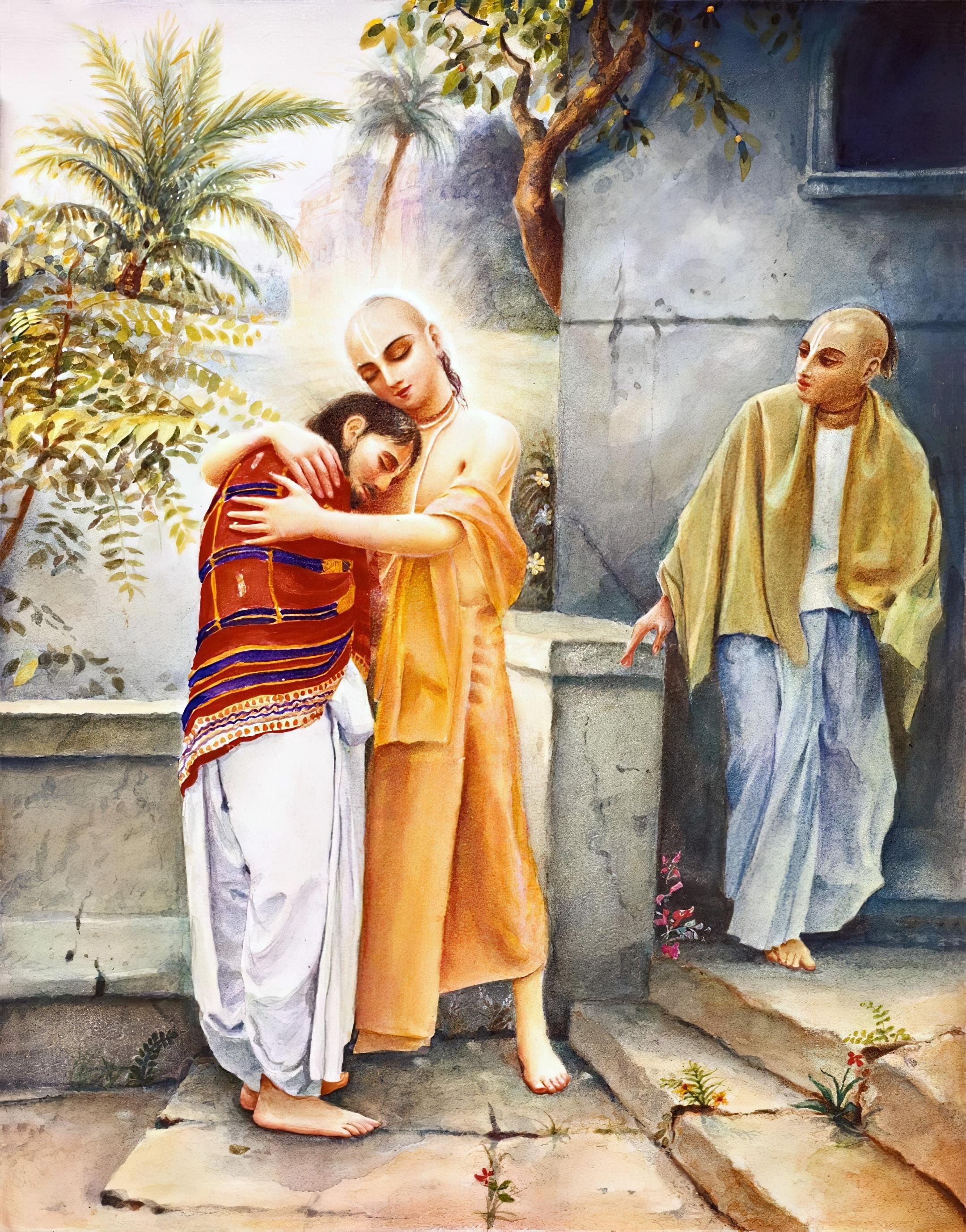 How can we do that? Prabhupāda gives the solution in his purport: “This serious devotional service can develop by hearing for long periods of time. Chanting and hearing are the beginning of the process of devotional service. One should associate with devotees and hear from them about the Lord’s transcendental appearance, activities, disappearance, instructions, etc.”