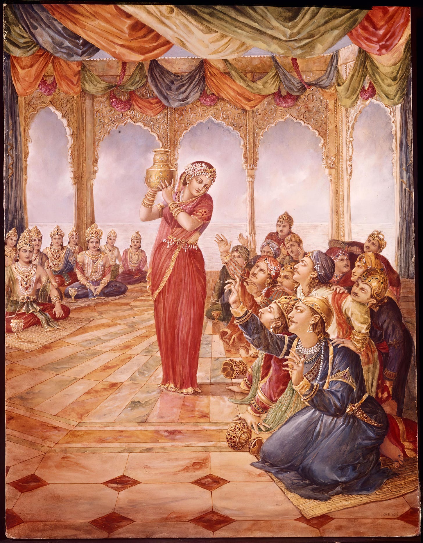 In reality, both ideas are present in the scriptures. Ladies who would be ascetics would dress like ascetics, like in the example of Devahūti when she was performing austerities following the vows of her husband. At that time, she was using torn clothes, her hair became matted, and she looked emaciated and unattractive. Ladies who desire to be ascetics may follow this example. However, it’s also described that ladies in family life would dress very beautifully for different social functions, and this would create a happy and beneficial situation. It’s also mentioned that ladies would dress well at home, with clean and attractive clothes with the purpose of keeping their husbands’ minds in good order, so they could properly execute their family duties.