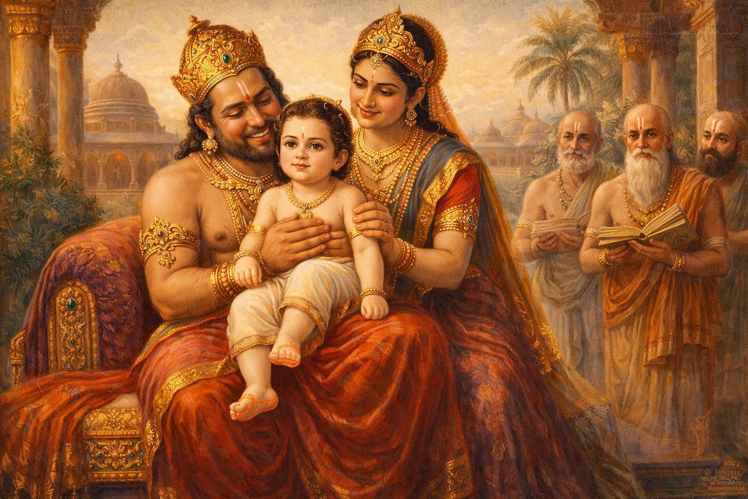 Maharaja Nābhi raised his transcendental son very carefully and affectionately, always overwhelmed with transcendental bliss. These feelings were coming from the influence of yoga-māyā, the internal potency of the Lord, and not from the illusory energy, like in the case of ordinary parents. It is not possible for someone to see the Supreme Lord as his son without being under illusion, but in this case, it was the same transcendental illusion that orchestrates the pastimes of the Lord in the spiritual world. As Prabhupada explains, “The Supreme Lord appears as the son of one of His devotees, just as Lord Kṛṣṇa appeared as the son of Yaśodā and Nanda Mahārāja. These devotees could never think of their son as the Supreme Personality of Godhead, for such appreciation would hamper their relationship of parental love.”