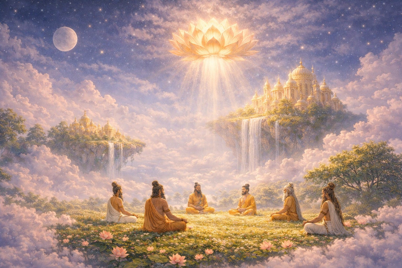 The astral realms of Maharloka, Janaloka, Tapoloka, and Satyaloka