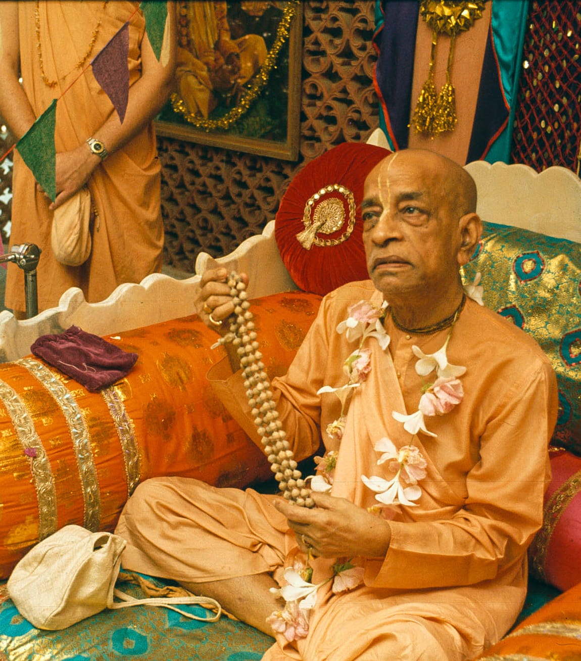 In the case of Srila Prabhupada, he was able to solve the first problem by being a paramahaṃsa. A paramahaṃsa can accept any number of disciples and just destroy all their previous karma, just like a big forest fire burns trees. In later years, a Vaiṣnava in Vṛndāvana, alarmed at the possible consequences to Prabhupada's health, visited him with different passages of the scripture, alerting him that having his mūrtis installed in the temples and being worshiped daily would make him accept the karma of not only his disciples but of all people attending the daily guru-pūjā. Prabhupada paused and answered gravelly: "That's why I came."