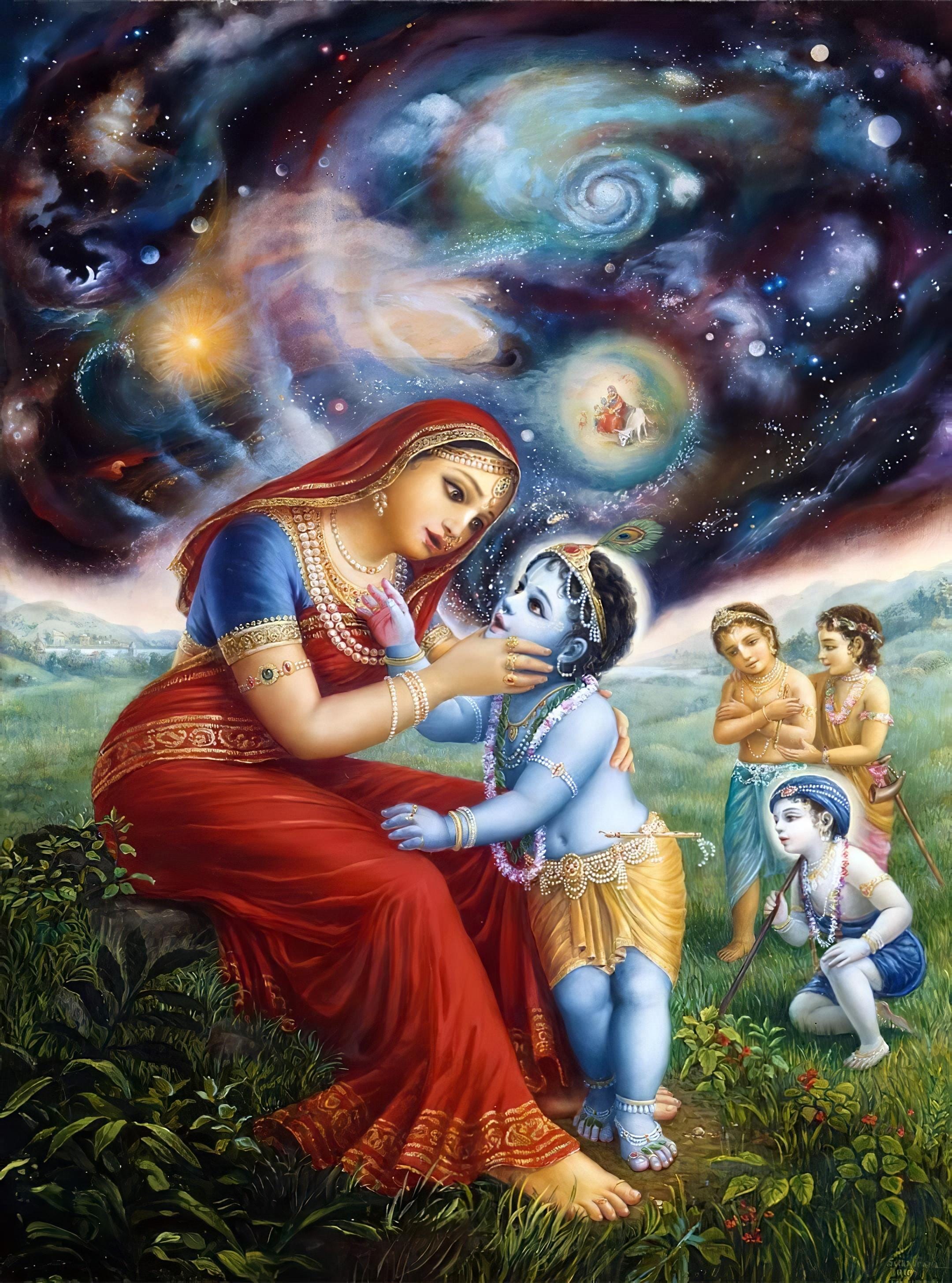 In our gross reality, the universe appears to be almost empty, and everything is extremely far away. From the higher-dimensional perspective of the demigods, however, the different planets that compose the intermediate planetary system form a cosmic lotus, with the higher planetary systems orbiting around it like a giant chandelier. From the point of view of blind physical laws, it doesn’t make much sense, but from the perspective of an all-powerful God with an artistic sense, it’s perfectly plausible.