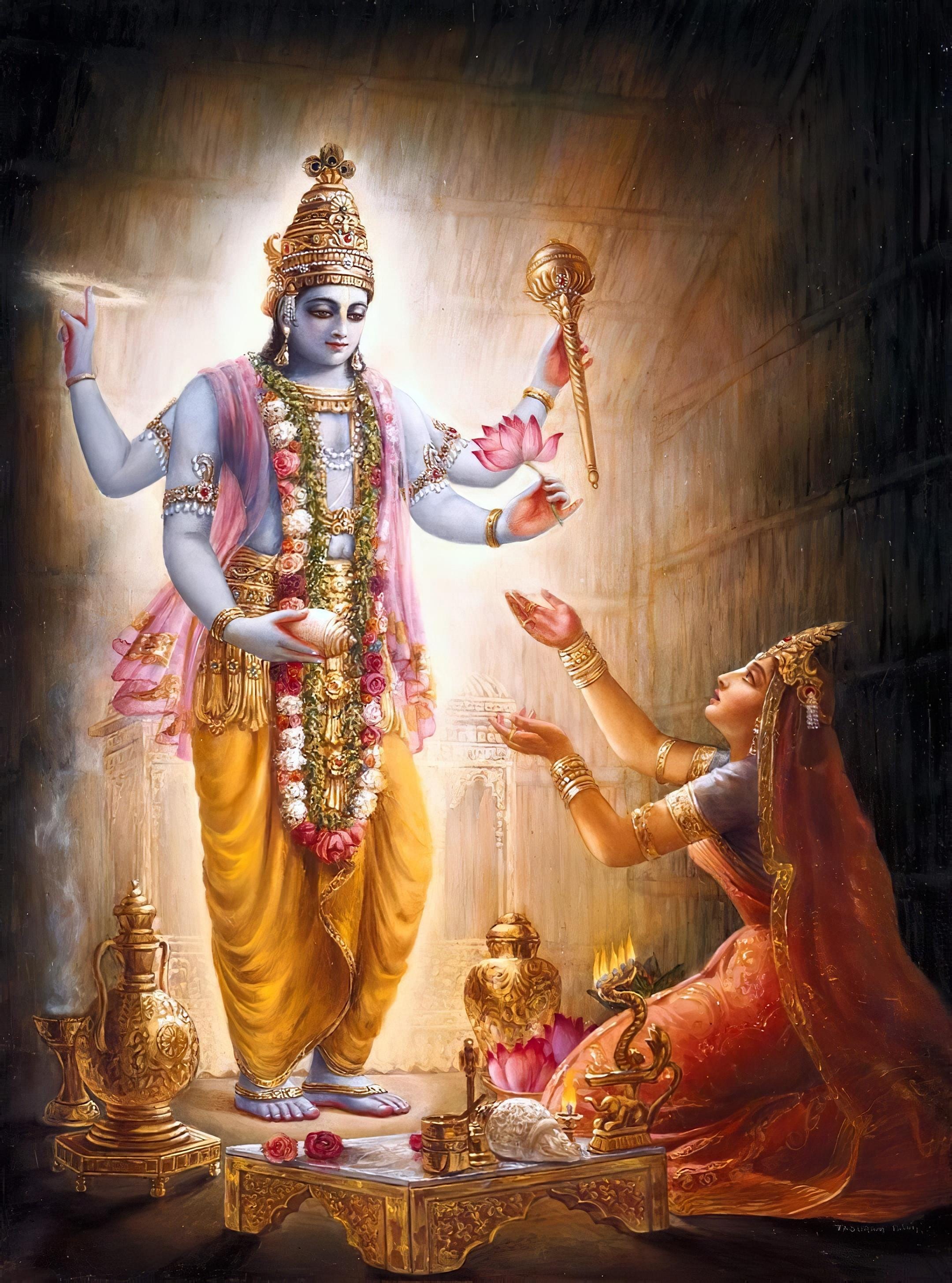 “Kṛṣṇa is the Supreme, all-pervading Lord. He is worthy of all worship. Although He is one, He manifests Himself in countless forms. Those resolute sages who unceasingly worship Him seated on His throne obtain constant happiness not available to others.”