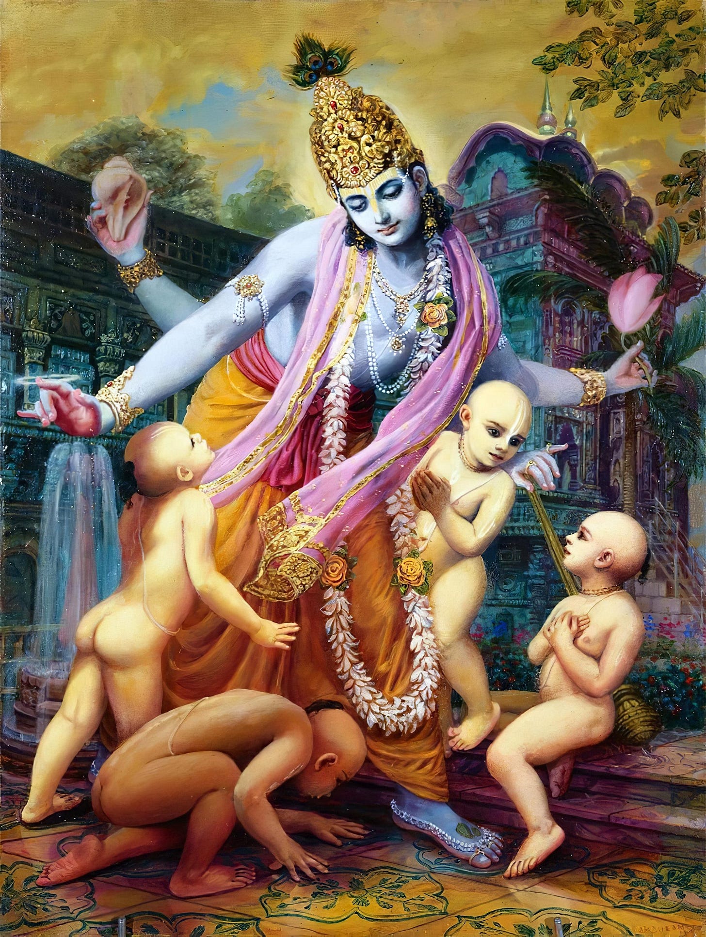 The teaching of the 5th fire also describes human sexuality in the context of this cycle of sacrifices. In the Gita (7.11), Krsna says He is sex life which is not contrary to religious principles. Both men and women desire material happiness and such mutual material happiness can be obtained through the institution of marriage. When one gets married, there is the ceremony of vivaha-yajña, which indicates the beginning of a sacrifice that is concluded only when one enters into renounced life or dies. In this way, the whole family life is a continuous process of sacrifice, where one executes religious duties and thus grows in spiritual understanding. Inside of family life, the main duty is to beget and educate a few children giving them a chance of participating in this cycle of sacrifice and going back to Godhead. In this context, human sexuality can be used positively.