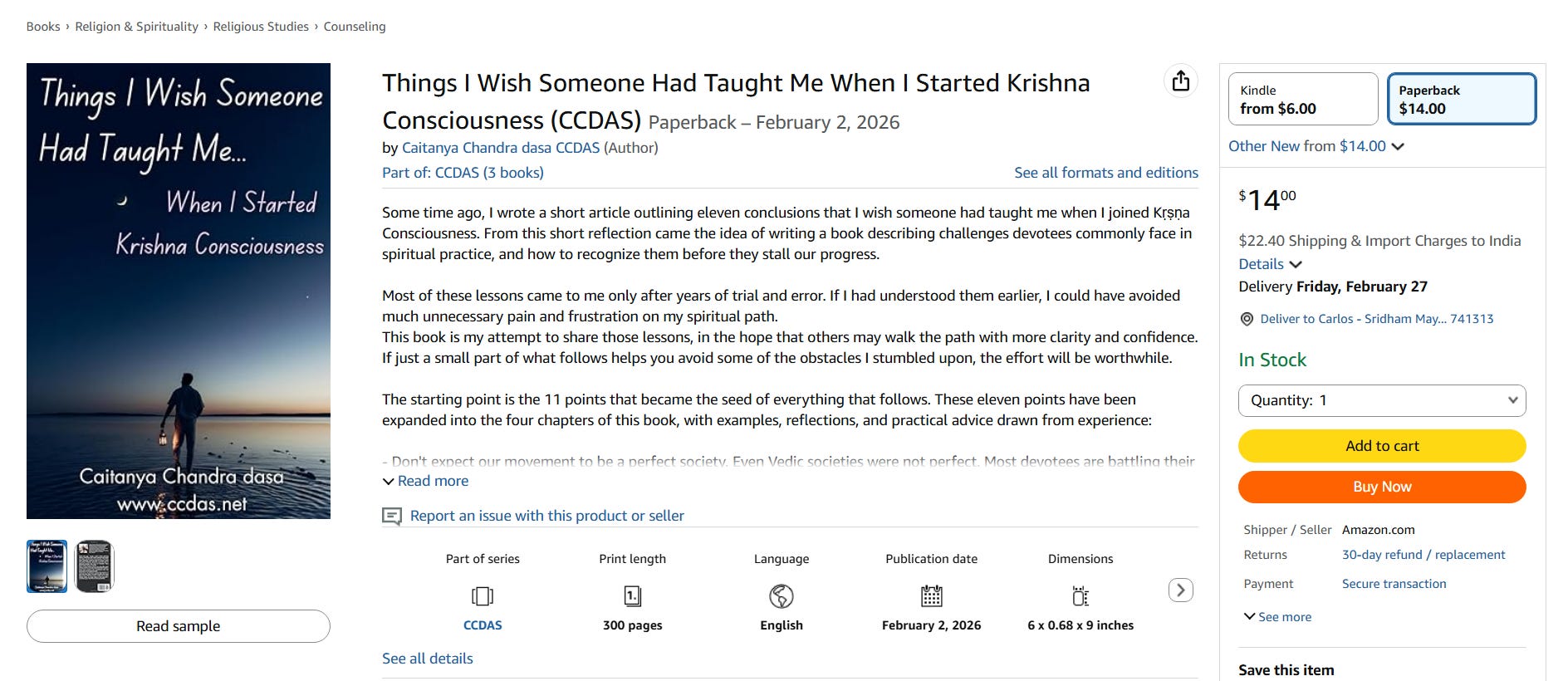 My books are also available in India through Pothi. They also send to a few other countries. Here are the links: Things I Wish Someone Had Taught Me When I Started Krishna Consciousness | The “Fall” of the Jīva | Govinda-bhāṣya vol 01