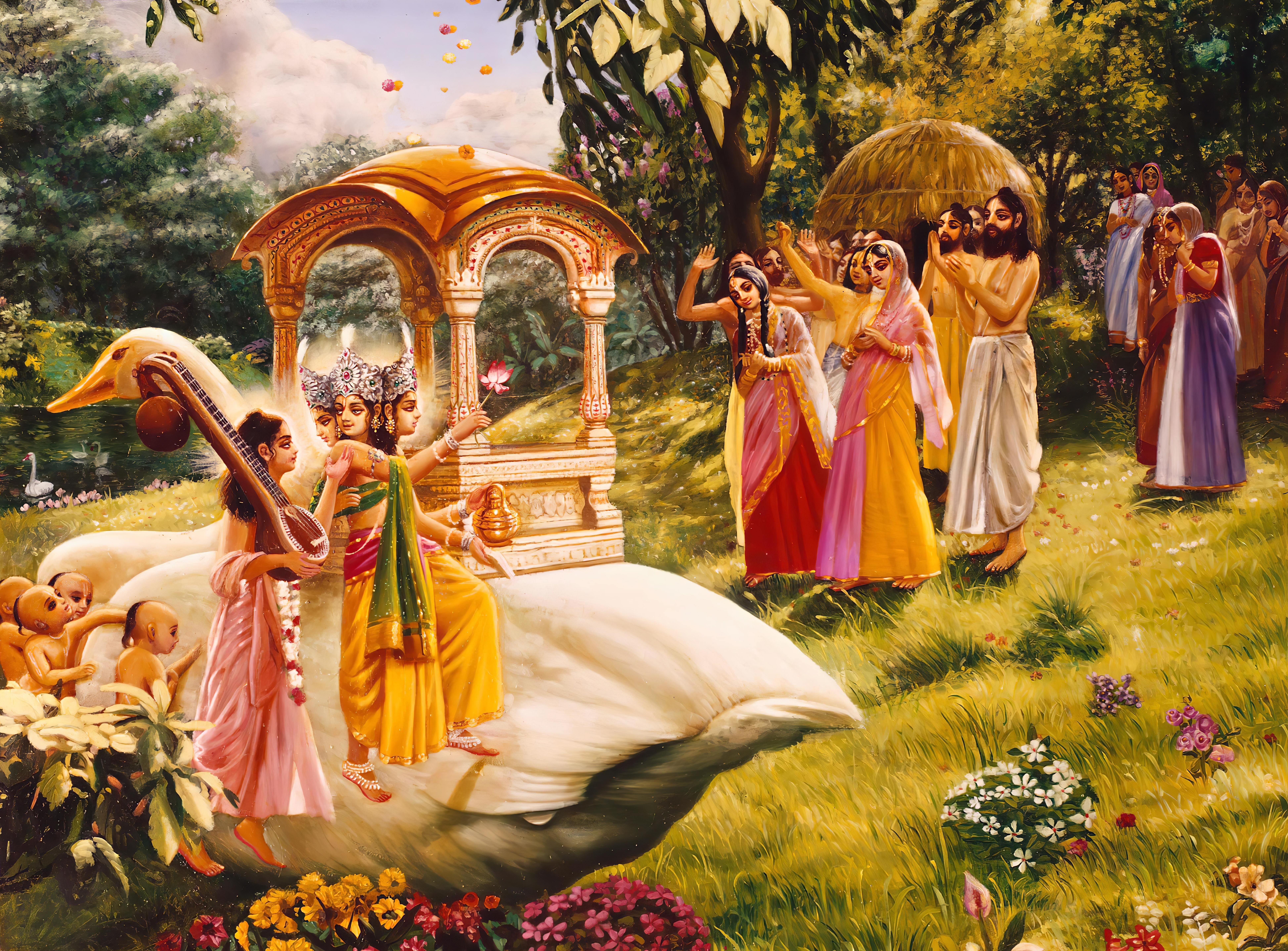 The teaching of the 5th fire also describes human sexuality in the context of this cycle of sacrifices. In the Gita (7.11), Krishna says He is sex life which is not contrary to religious principles. Both men and women desire material happiness and such mutual material happiness can be obtained through the institution of marriage. When one gets married, there is the ceremony of Vivaha-yajña, which indicates the beginning of a sacrifice that is concluded only when one enters into renounced life or dies. In this way, the whole family life is a continuous process of sacrifice, where one executes religious duties and thus grows in spiritual understanding. Inside of family life, the main duty is to beget and educate a few children giving them a chance of participating in this cycle of sacrifice and going back to Godhead. In this context, human sexuality can be used positively.