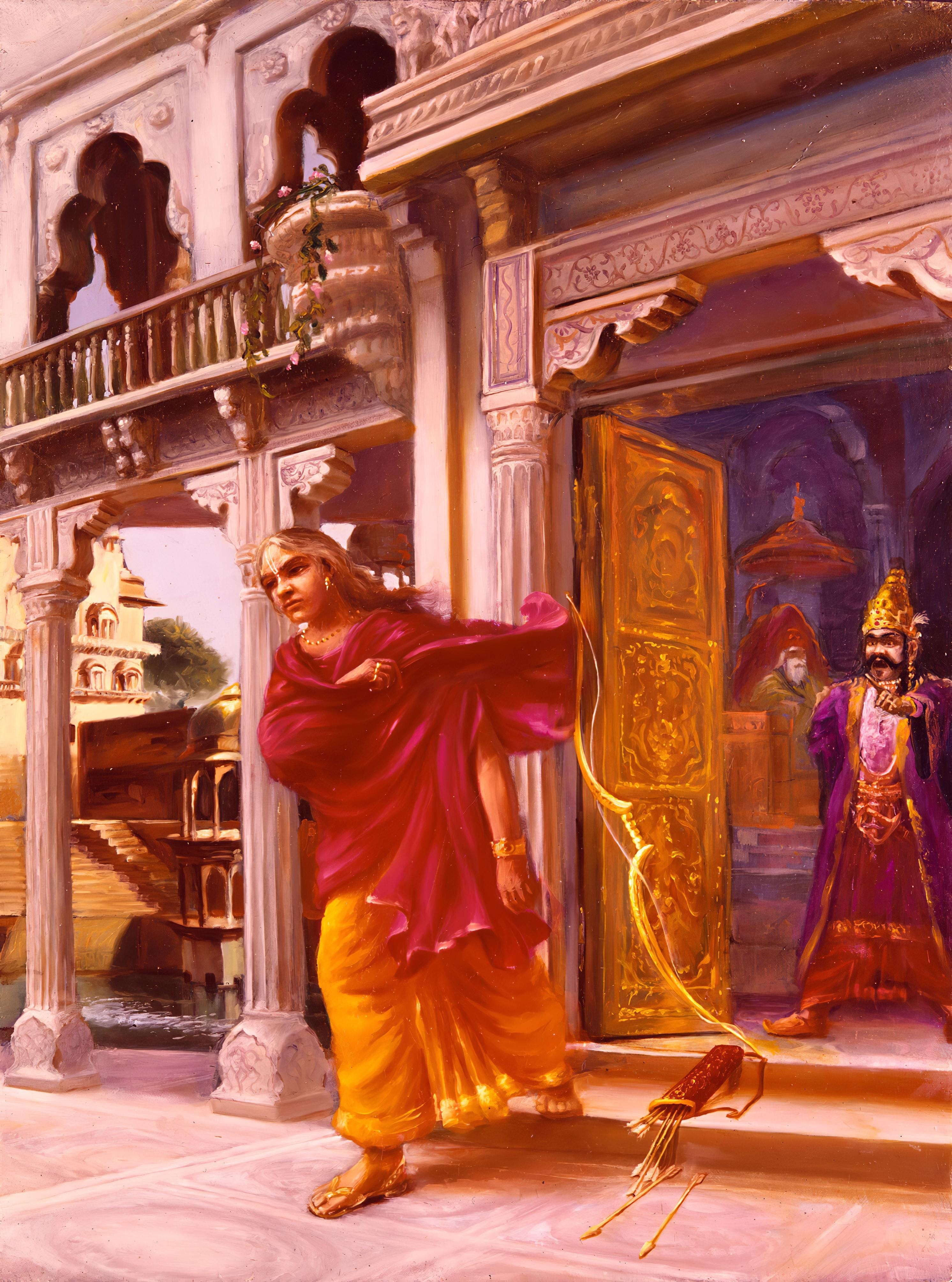 Duryodhana then used the opportunity to expel Vidura from the palace, which he gladly accepted, understanding that there was nothing he could do for his brother at the time and that it would be better to go out on pilgrimage, using his time to visit holy places and meet saintly persons.
