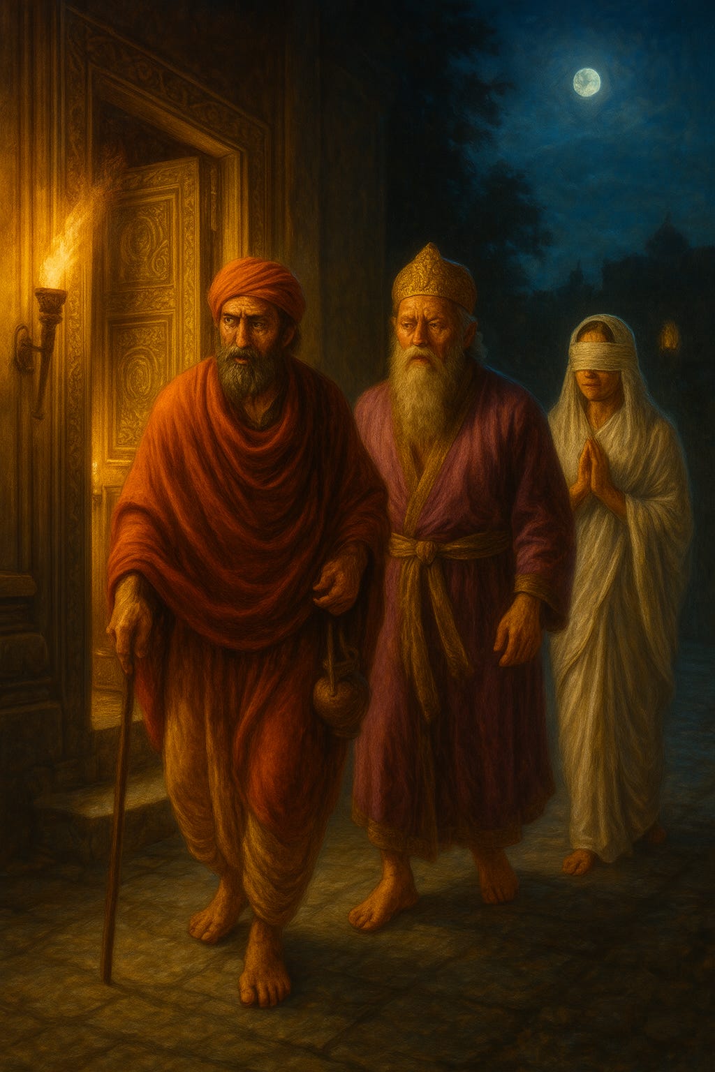 Vidura returns to the palace, and Dhṛtarāṣṭra leaves home