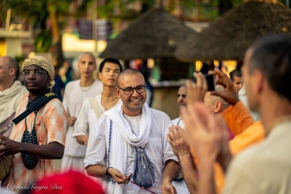 One of the most important points in Vaishnava philosophy is the acceptance of a spiritual master, an enlightened teacher who can help us overcome our deficiencies and progress further in the spiritual path. In this way, I was initiated in the Gaudiya Vaishnava line by His Holiness Bhakti Dhira Damodhara Swami, who is in turn disciple of Srila Bhakti Thirta Swami, who is in turn disciple of AC Bhaktivedanta Swami Prabhupada. In this way, I became part of a line of spiritual teachers who go all the way back to Krsna Himself!