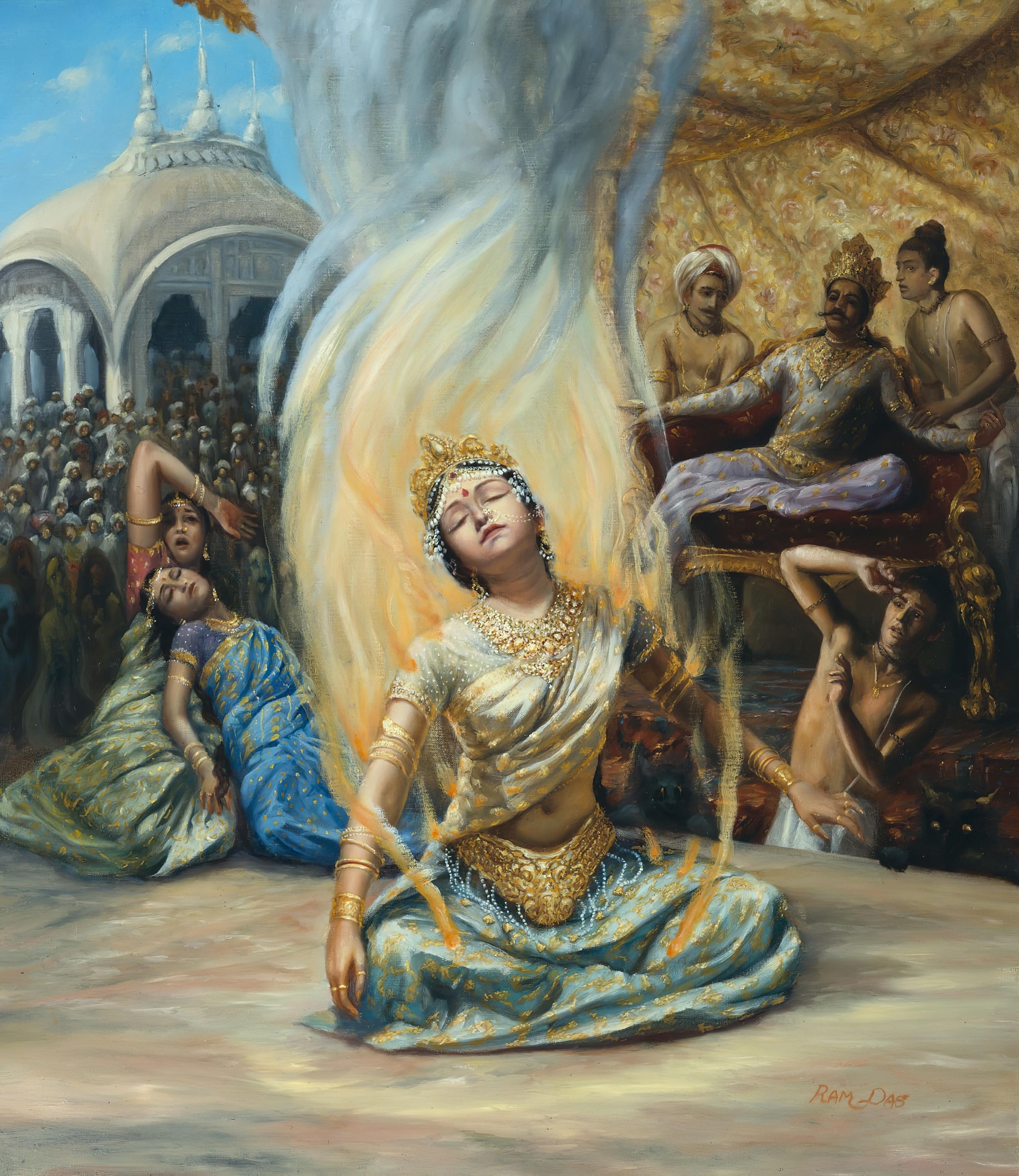 Satī and Lord Śiva formed an ideal couple: Lord Śiva is the greatest Vaiṣnava, completely devoted to the Lord, while Satī was an extremely dedicated and qualified wife. Being so, why did she decide to quit her body, burning it in the fire of mystic yoga, abandoning both her life and her qualified husband?